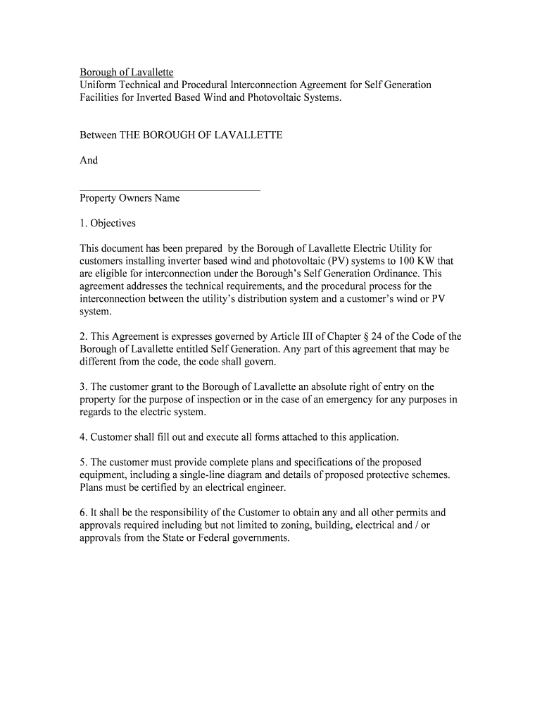 Borough of LaFollette Uniform Technical and Procedural Interconnection Agreement for Self Generation Facilities for Inverted Based Wind and Photovoltaic Systems. Between THE BOROUGH OF LaFollette