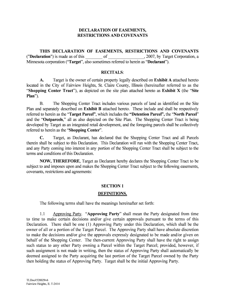 Get the free TARGET-520029-v6-FairviewHeightsILDeclarationofEasementsRestrictionsandCovenantsDOC