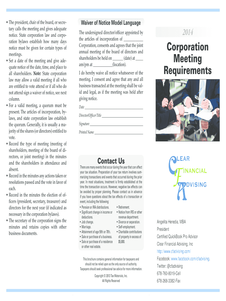The president, chair of the board, or secretary calls the meeting and gives adequate notice. State corporation law and corporation bylaws establish how many days notice must be given for certain types