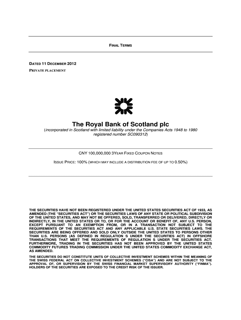 FINAL TERMS DATED 11 DECEMBER 2012 PRIVATE PLACEMENT The Royal Bank of Scotland plc (incorporated in Scotland with limited liability under the Companies Acts 1948 to 1980 registered number SC090312)