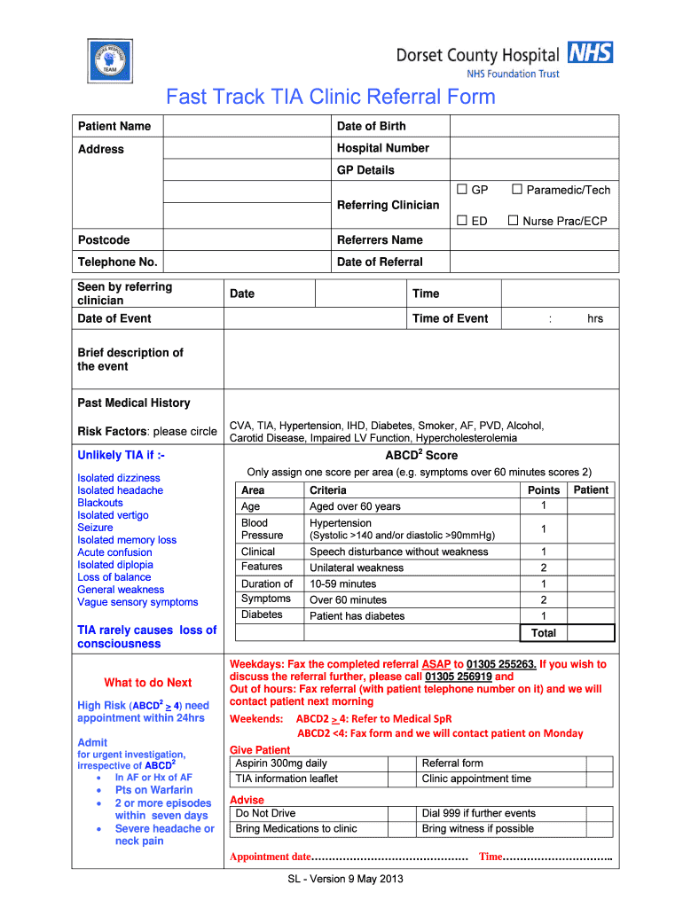 Get the free Fast Track TIA Clinic Referral bFormb - dchft nhs