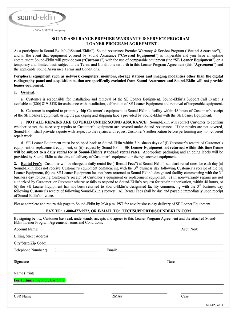 Get the free Loaner Program Agreement - Sound Resources - Sound-Eklin