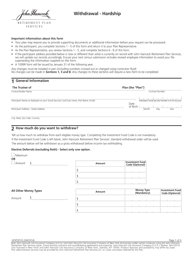 Individuals who have a John Hancock retirement account and are experiencing financial hardship may be required to file the withdrawal form.