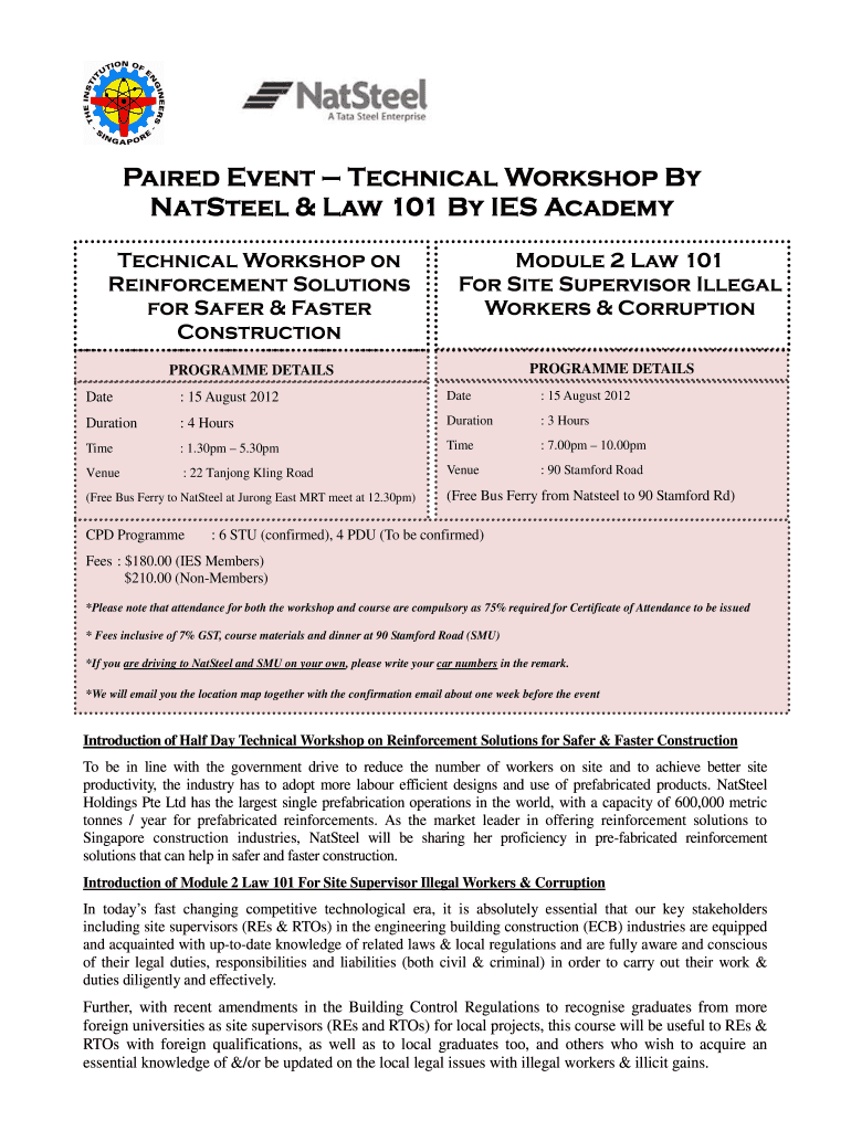 Paired Event Technical Workshop By NATO Steel & Law 101 By IES Academy Technical Workshop on Reinforcement Solutions for Safer & Faster Construction Module 2 Law 101 For Site Supervisor Illegal Workers