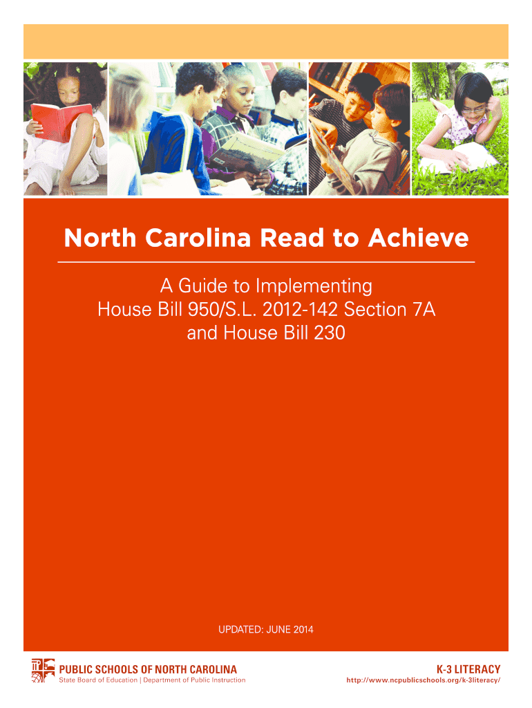 North Carolina Read to Achieve A Guide to Implementing House Bill 950/S.L. 2012142 Section 7A and House Bill 230 UPDATED: JUNE 2014 K3 LITERACY http://www.ncpublicschools.org/k3literacy/ STATE BOARD