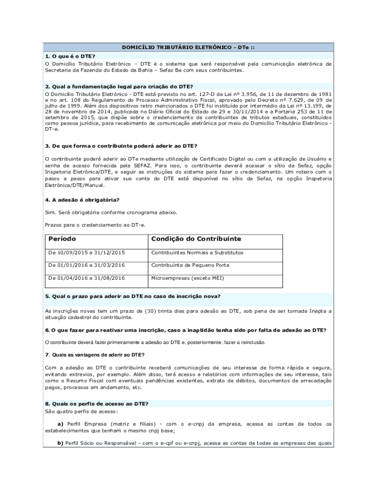 Get the free O queDTE? Vantagens em aderir, como cadastrar e consultar - NFE.io