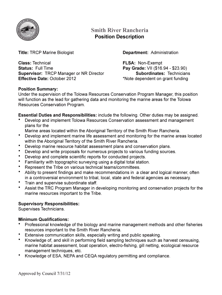 Get the free Marine Biologist grade 7 approved 7 31 12.pages - Tolowa-nsn.gov - tolowa-nsn