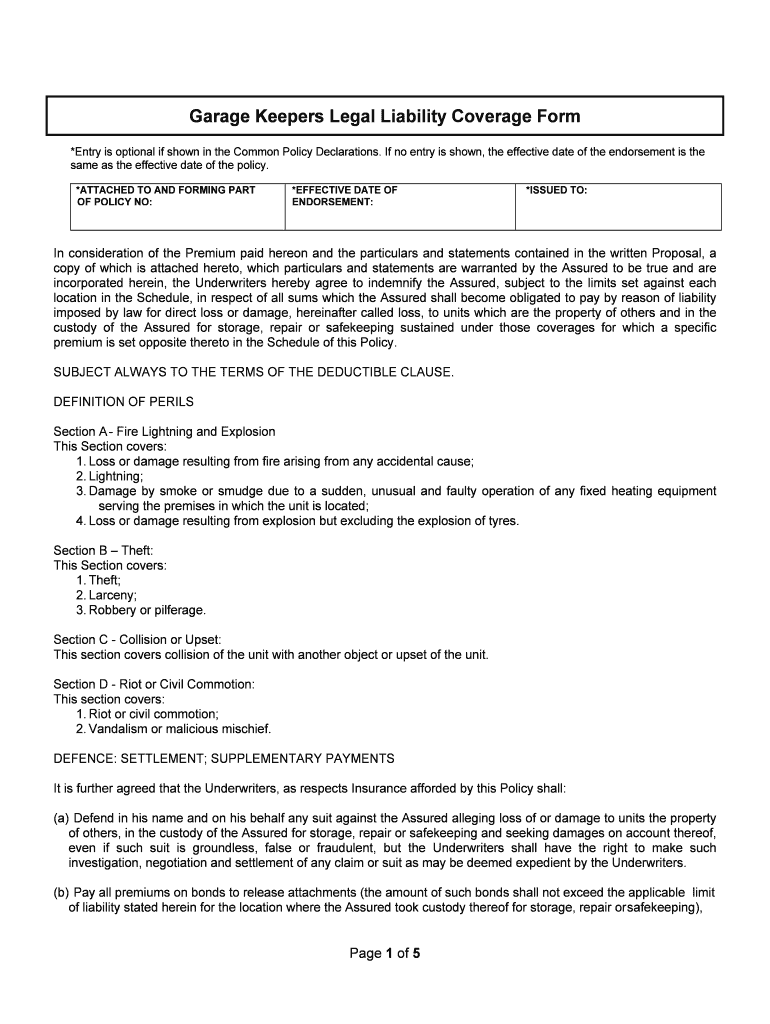How to fill out garage keepers legal liability