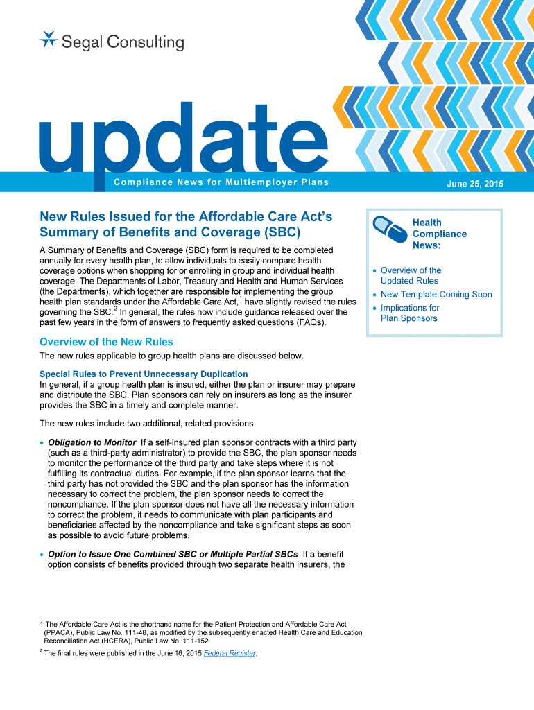 June 25, 2015New Rules Issued for the Affordable Care Acts