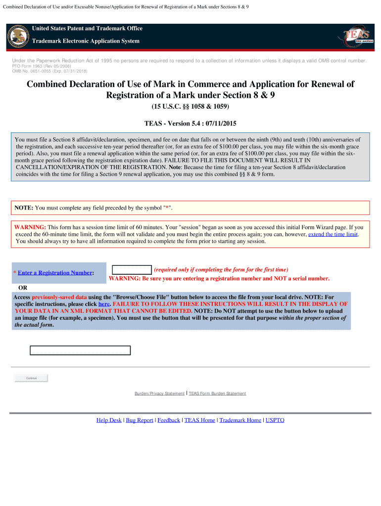 Combined Declaration of Use and/or Excusable Nonuser/Application for Renewal of Registration of a Mark under Sections 8 & 9 United States Patent and Trademark Office Trademark Electronic Application