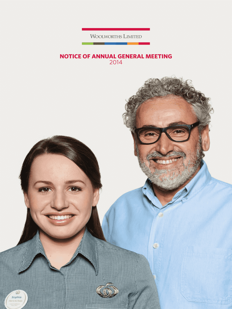 Notice of Annual General Meeting 2014 Notice of Annual General Meeting 2014 woolworthslimited.com.AU Woolworths Limited ABN 88 000 014 675 Notice is given that the eighty-ninth Annual General Meeting