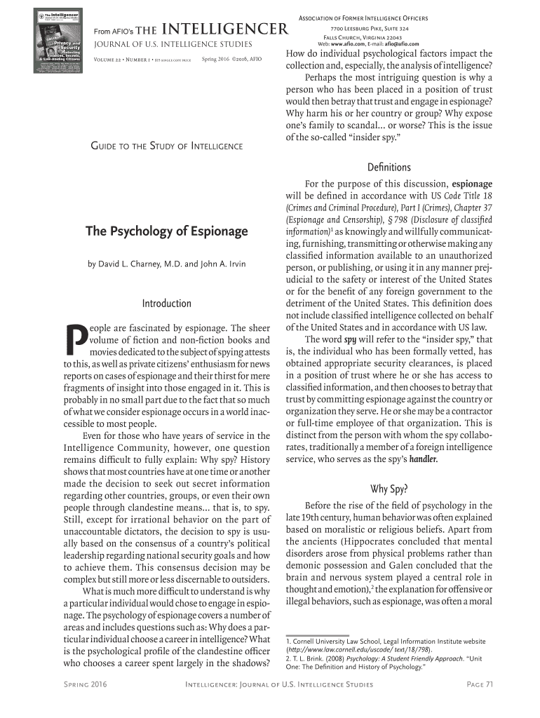 Get the free AFIO's Guide to the Study of Intelligence: Peter C. Oleson ...
