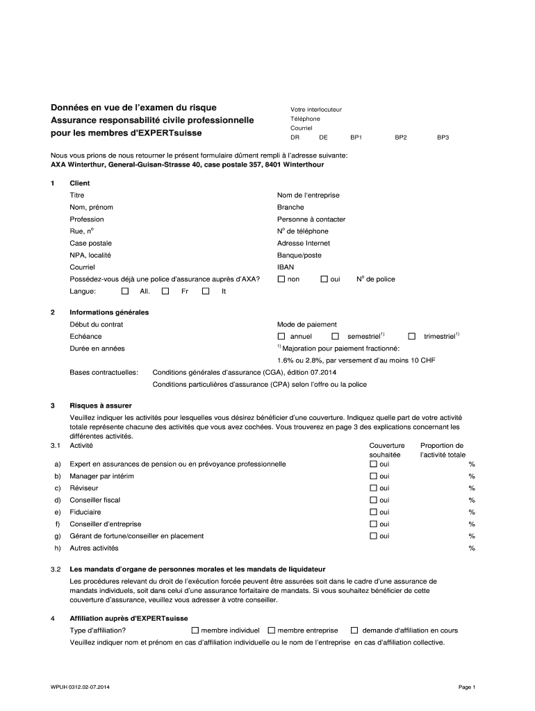 Donne sen due DE examen Du risqué Vote interlocutor Assurance responsibility civil professionally Tl phone pour LES members d 'Expertise Courier DR DE BP1 BP2 BP3 P Nous vows prions DE nous returner