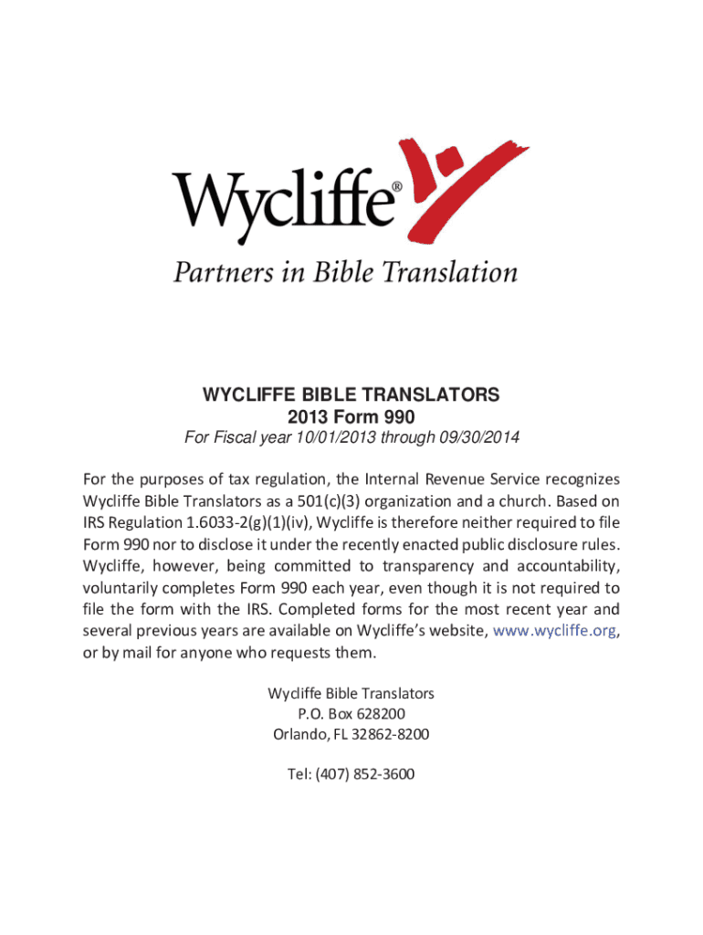 Get the free Form 990 Final - Wycliffe Bible Translators