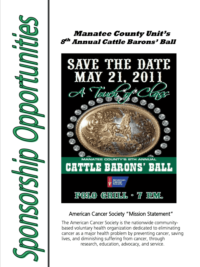 Manatee County Units 8th Annual Cattle Barons Ball American Cancer Society Mission Statement The American Cancer Society is the nationwide community based voluntary health organization dedicated to