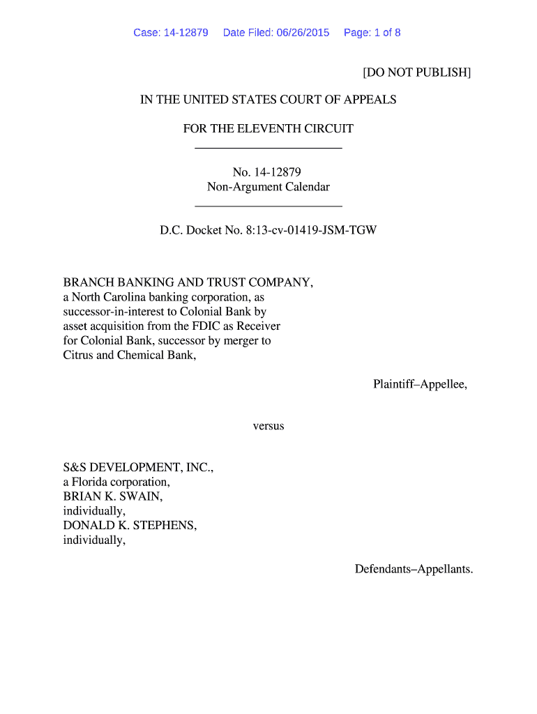 Get the free No. 14-12879 Non-Argu - U.S. Courts
