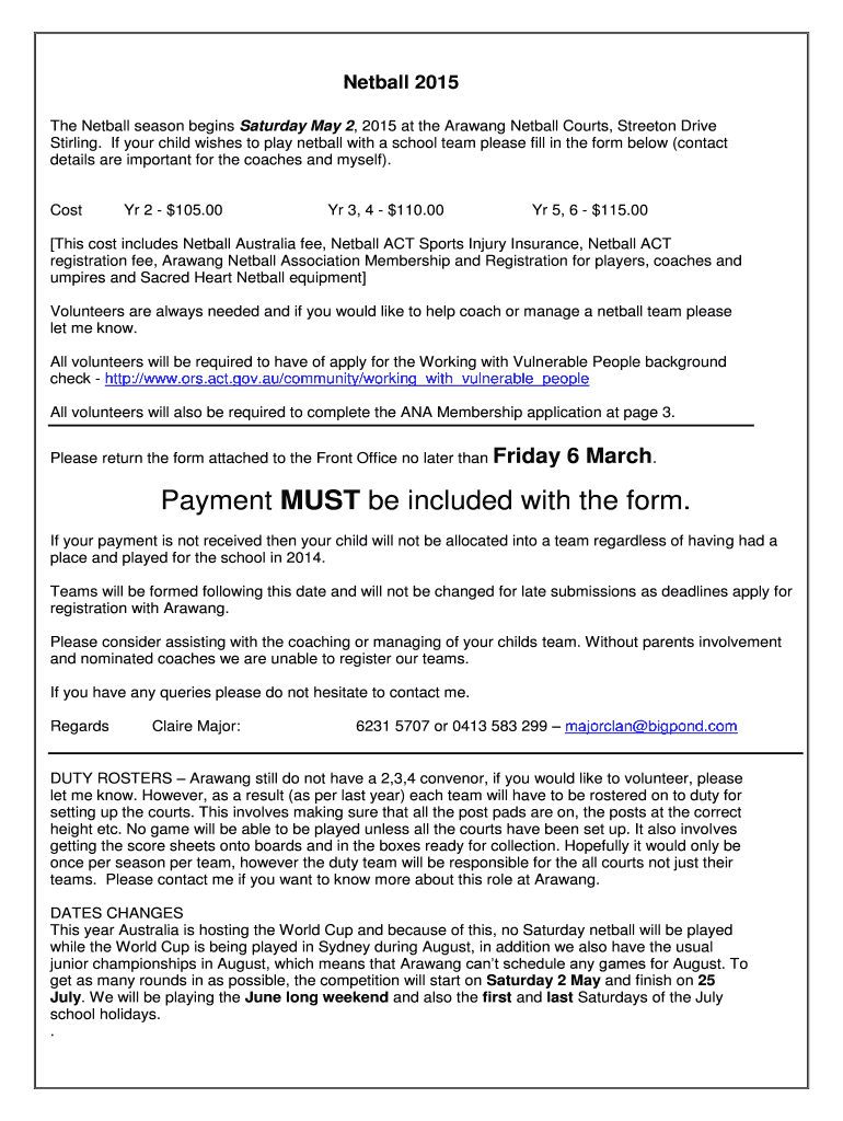 Get the free SHP Weekend Netball - Sacred Heart Primary School - sacredhps act edu