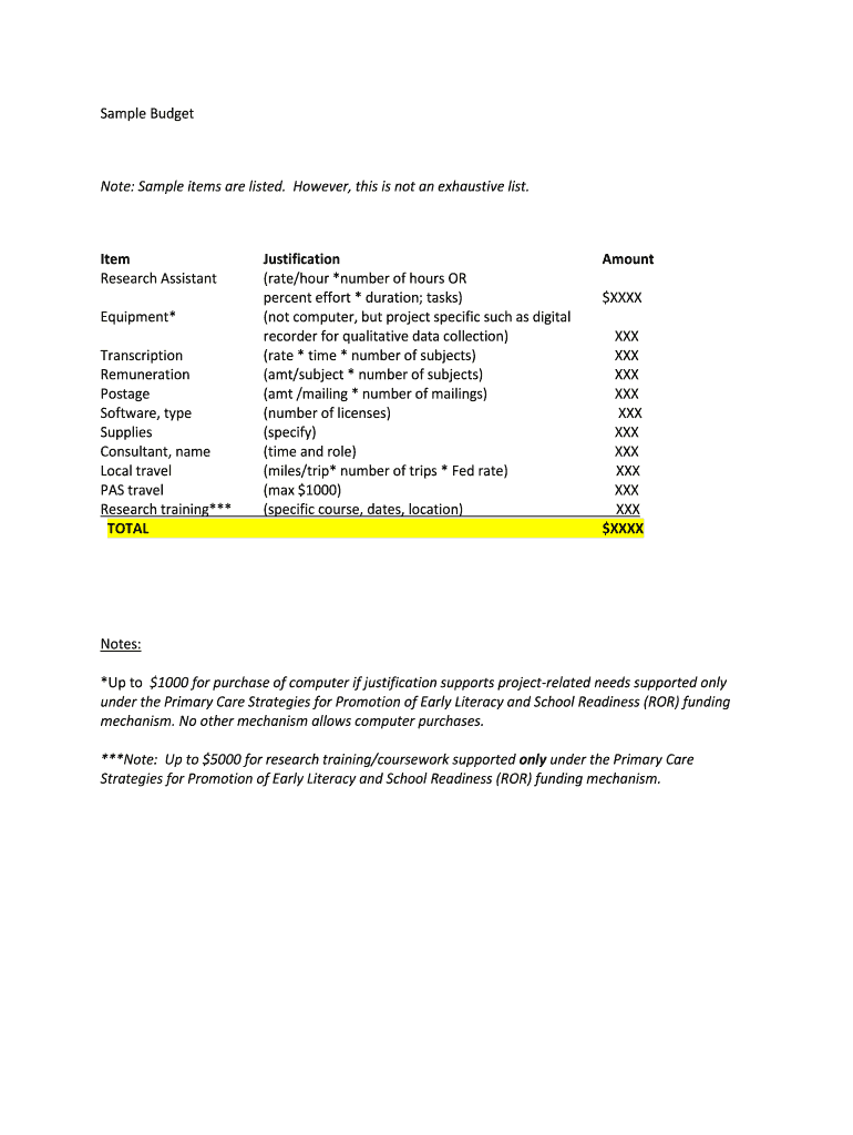 Sample BudgetNote: Sample items are listed. However, this is not an exhaustive list. Item