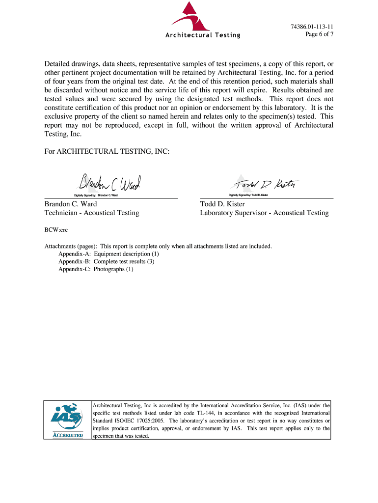 Architectural Testing ASTM E 90 SOUND TRANSMISSION LOSS TEST REPORT Rendered to: THERMAL DOORS SERIES/MODEL: Classic Craft, Fiber Classic, and Smooth Star TYPE: 3/8 Fire Rated Side Hinged Door Summary