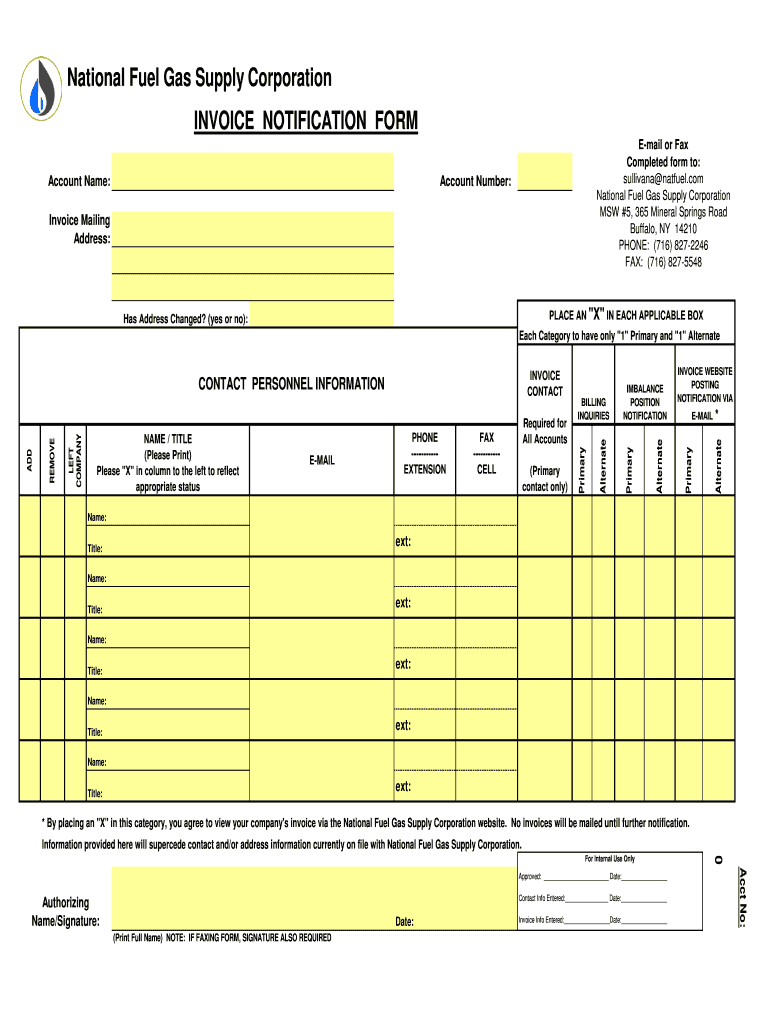 Get the free National Fuel Gas Supply Corporation INVOICE NOTIFICATION FORM