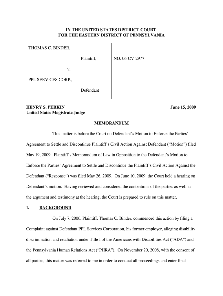 FOR THE EASTERN DISTRICT OF PENNSYLVANIA
