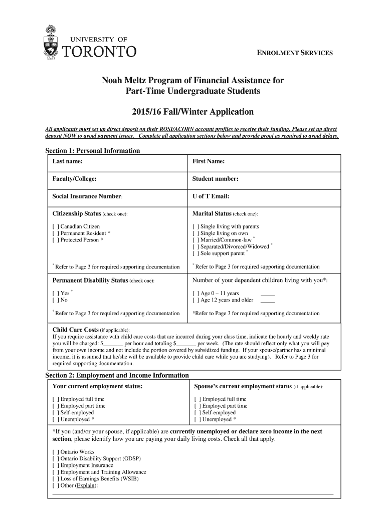 Undergraduate students at the University of Toronto are required to file the noah meltz program application if they wish to receive financial aid.