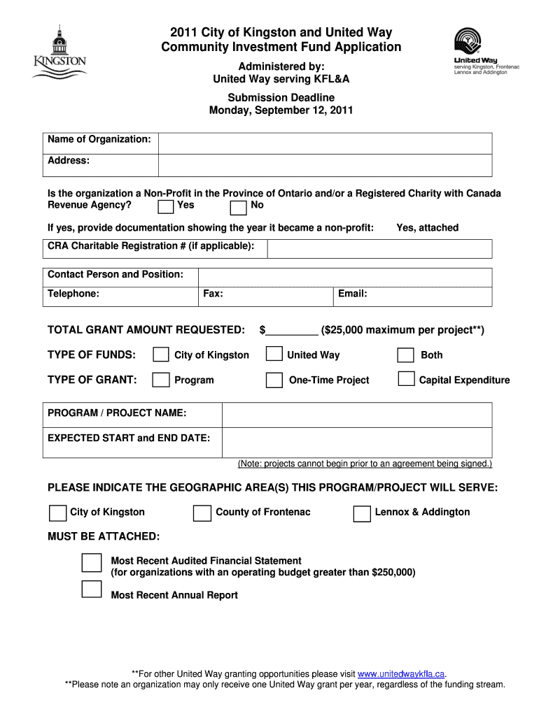 Get the free B2011b City of Kingston and United Way Community Investment Fund bb