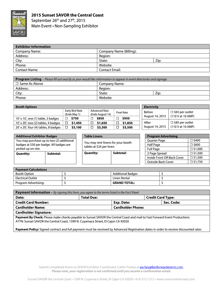 Get the free Non-Sampling Registration Fact Sheet b2015b Sunset SAVOR the bb