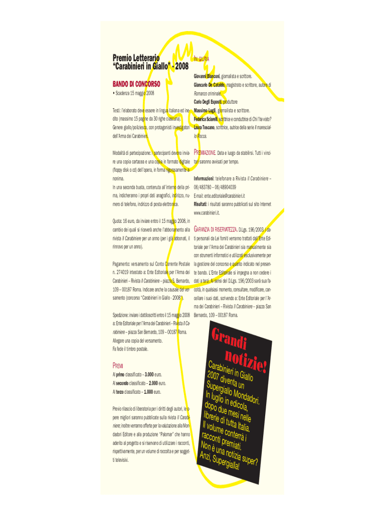 Ottieni il gratuito Nona edizione del Premio Letterario Carabinieri in Giallo