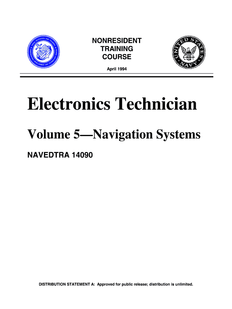 NONRESIDENT TRAINING COURSE April 1994 Electronics Technician Volume 5Navigation Systems AVESTA 14090 DISTRIBUTION STATEMENT A: Approved for public release; distribution is unlimited. Although the