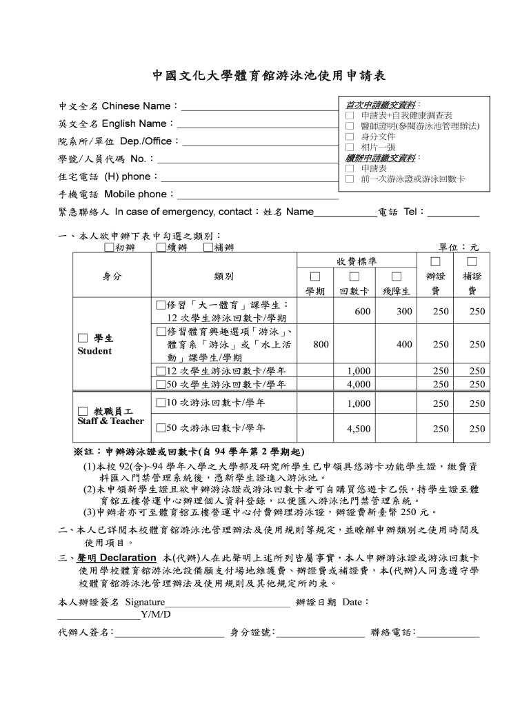 Chinese Name + English Name () / DEP./Office / No. (H) phone