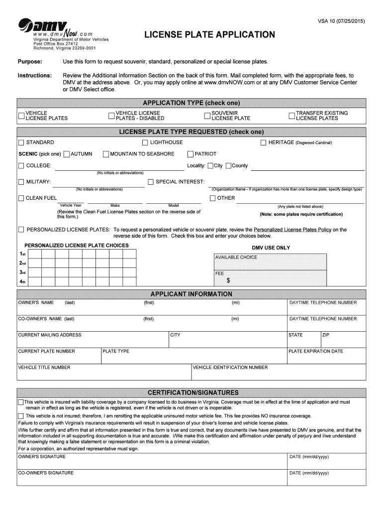 Get the free License plate application - Virginia Department of Motor Vehicles - scbsa