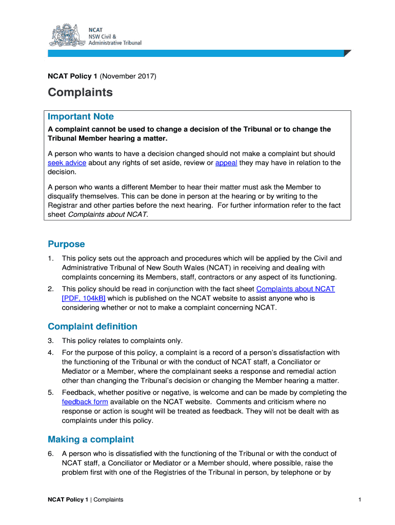 NCAA Policy 1 (November 2017)Complaints