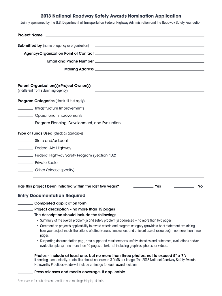 Get the free 2013 National Roadway Safety Awards Nomination Application bb - roadwaysafety
