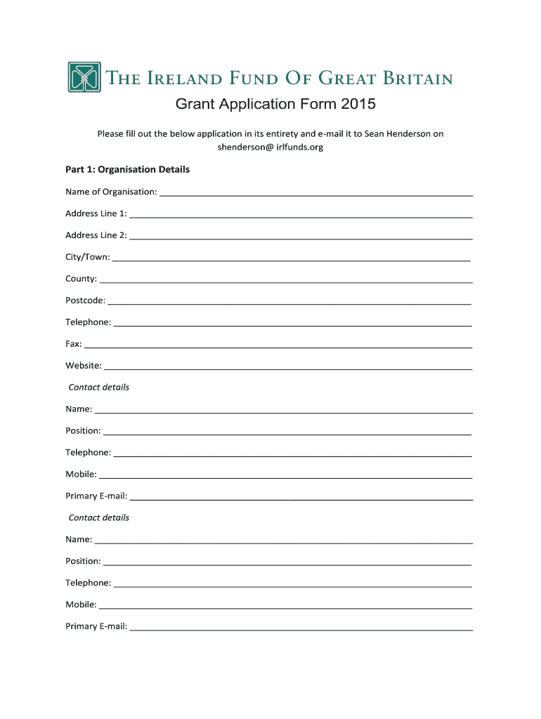 Grant Application Form 2015 Grant Application Form 2014 Grant Application Form 2013 Please fill out the below application in its entirety and email it to Sean Henderson on Henderson refunds.org Part