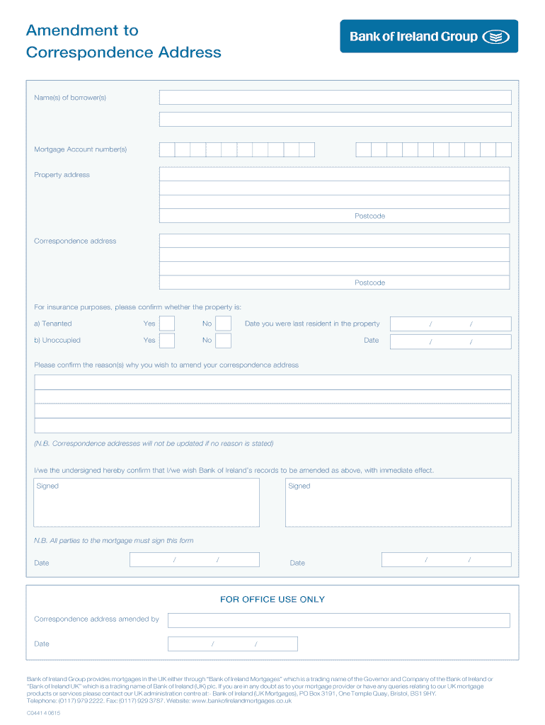 Get the free Amendment to Correspondence Address form - bankofirelandmortgages co