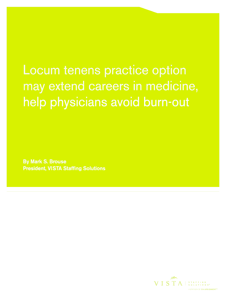 President, VISTA Staffing Solutions solution white paperLocum teens practice option may extend