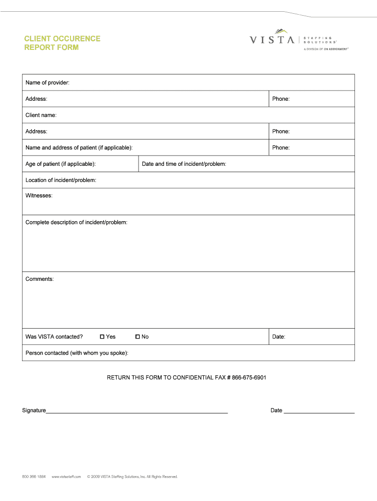 Get the free CLIENT OccurrenceReport prs 6-2014pdf - Vista Staffing Solutions