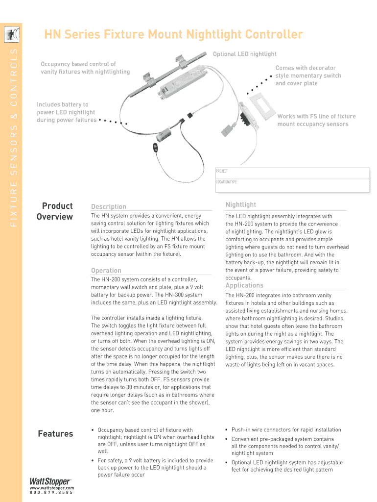 Get the free HN Series Fixture Mount Nightlight Controller - WattStopper