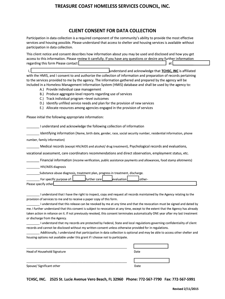 Get the free Client Consent for Data Collection - Treasure Coast Homeless bb - tchelpspot