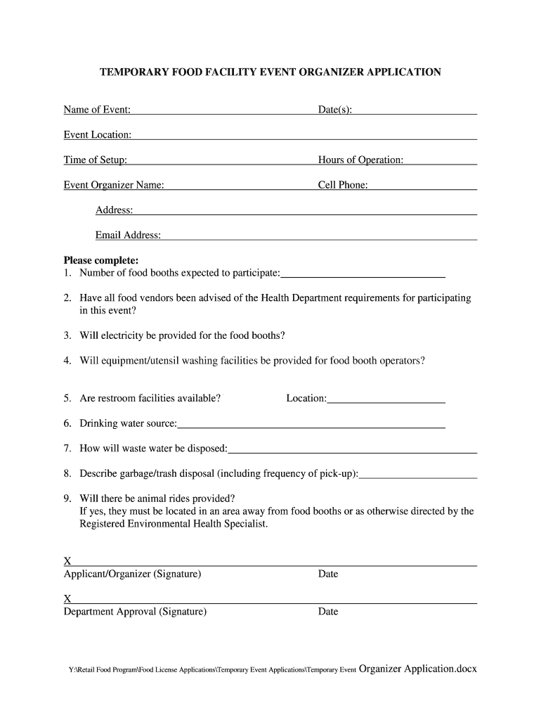 Get the free TEMPORARY FOOD FACILITY EVENT ORGANIZER APPLICATION