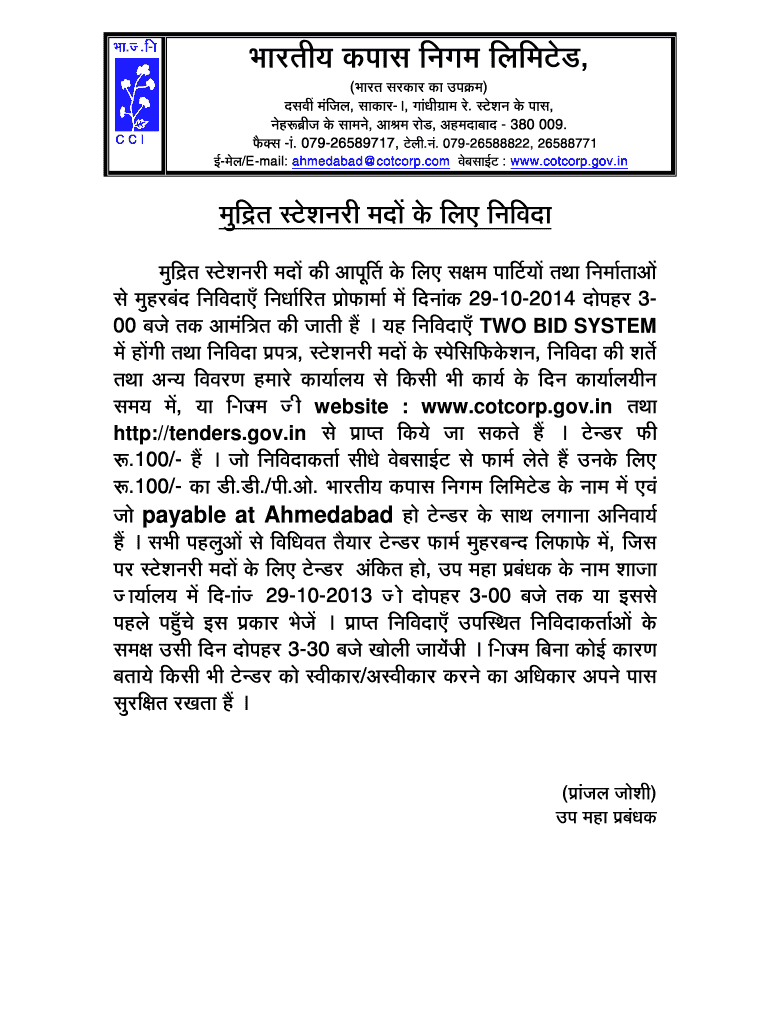 . CCI, (), 380 009. . 07926589717, 07926588822, 26588771 /Email: Ahmedabad cot corp