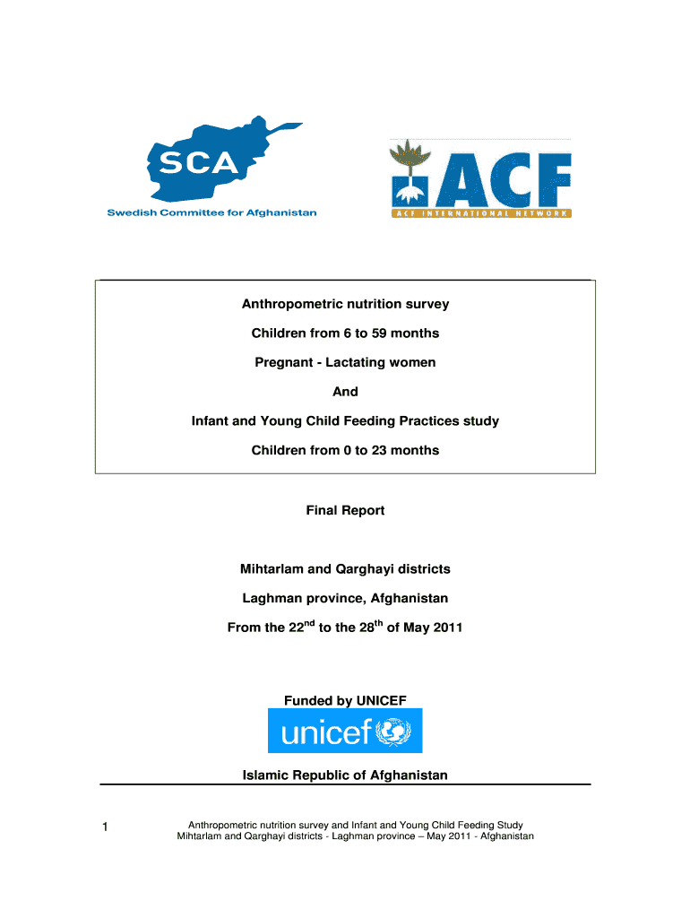 Get the free Anthropometric nutrition survey and IYCF study-Laghman province-May2011-Final Version