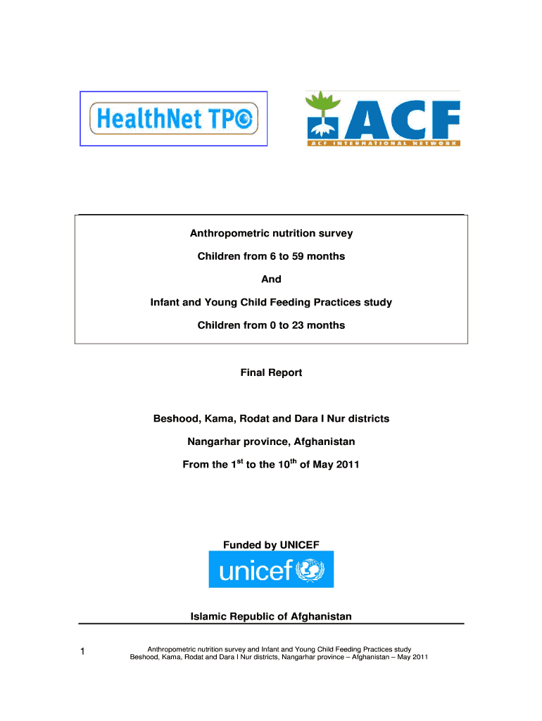 Get the free Anthropometric survey and IYCF study -Nangarhar province-May 2011-Final Version