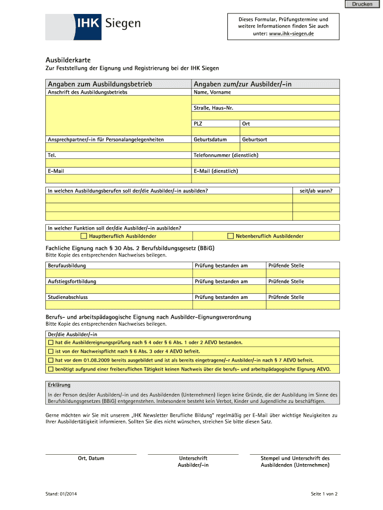 Holen Sie sich kostenlos Zur Feststellung der Eignung und Registrierung bei der IHK Siegen - ihk-...