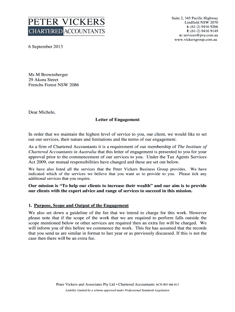 Edit your standard engagement letter for form online