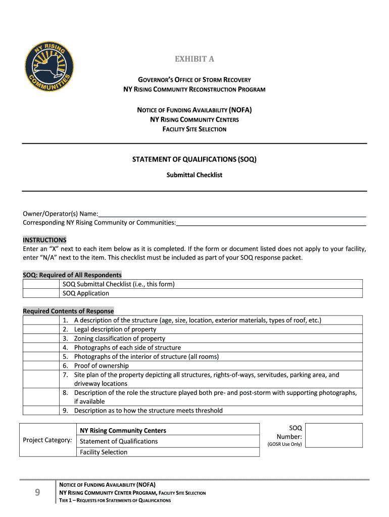 Get the free NOFA for Facility Site Selection - Governor39s office of storm recovery