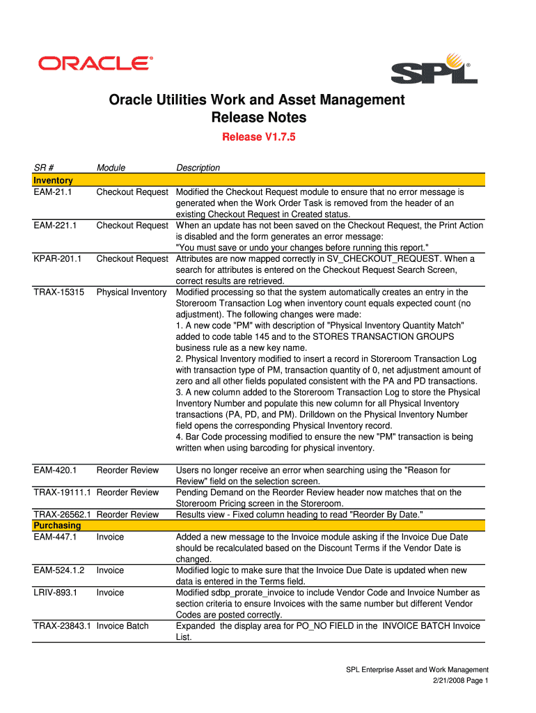 EAM21.1EAM221.1KPAR201.1TRAX15315EAM420.1ModuleDescriptionCheckout Request Modified the Checkout Request module