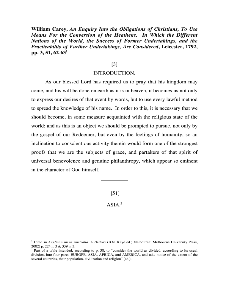 William Carey, An Inquiry Into the Obligations of Christians, To Use Means For the Conversion of the Heathens. In Which the Different Nations of the World, the Success of Former Undertakings, and