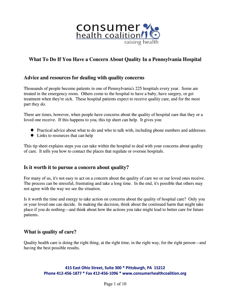 What To Do If You Have a Concern About Quality In a Pennsylvania HospitalAdvice and resources for dealing with quality concerns